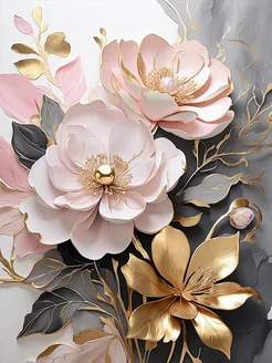 Картина по номерам с подрамником "Цветы с золотом" 30х40 см