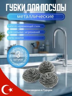 Металлическая губка для мытья посуды "Proff" 3 шт