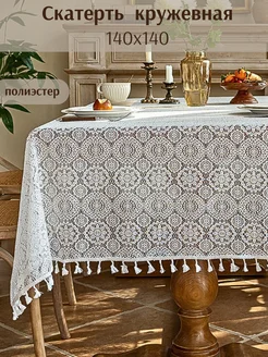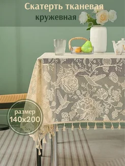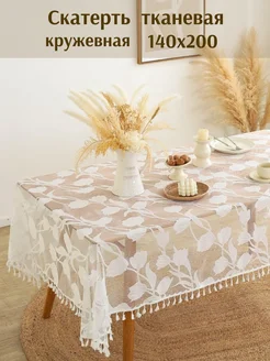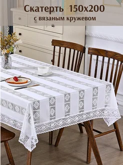 Скатерть на стол тканевая с вязаным кружевом 150х200см