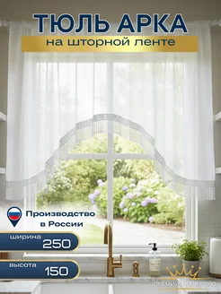 Тюль на кухню короткий вуаль белая арка 250х150 см гардина