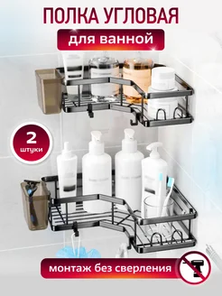Полка для ванной без сверления настенная черная 2 шт