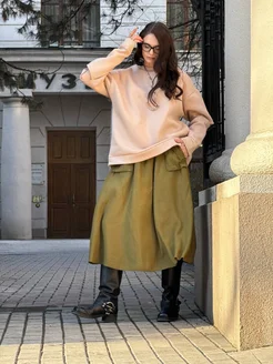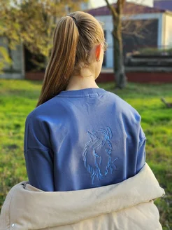 Свитшот оверсайз с разрезами на рукавах с принтом