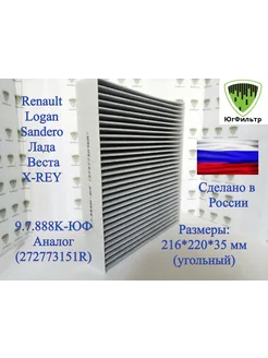 Фильтр салонный угольный для LADA VESTA, X-RAY, RENAULT