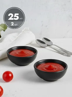 Соусники фарфоровые с ручкой 50 мл, 2 шт, соусница черная