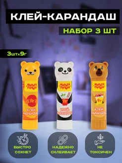 Клей-карандаш канцелярский для бумаги и картона набор 3 шт