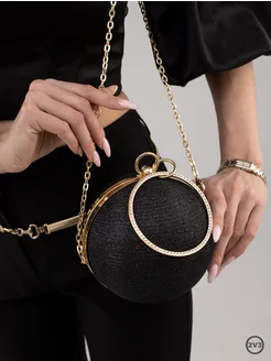 Клатч женский вечерний черный сумка шар круглая