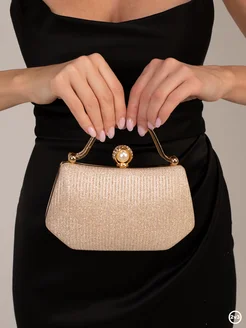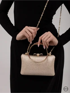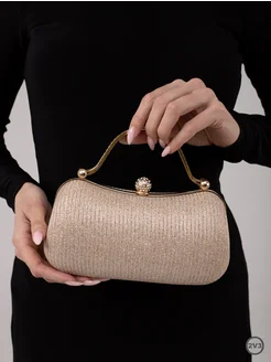 Сумка клатч вечерняя золотая на свадьбу со стразами