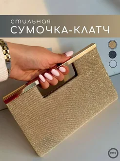 Модный вечерний клатч на цепочке с блестками