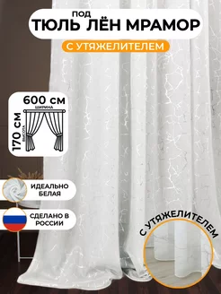 Тюль лен мрамор 600х170 см в спальню