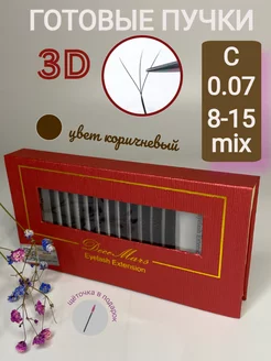 Ресницы для наращивания готовые пучки коричневые 3D W