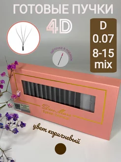 Ресницы для наращивания готовые пучки коричневые 4D W