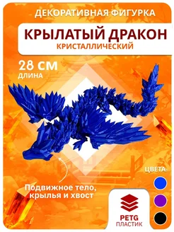 Подвижная 3д фигурка кристаллического дракона с крыльями