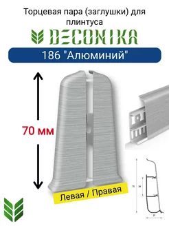 Торцевые заглушки плинтуса deconika 70 мм, 186 "Алюминий"