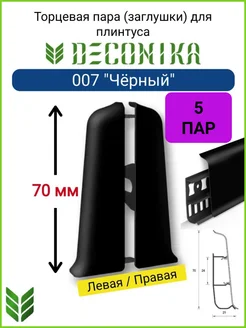 Заглушки для плинтуса DECONIKA 70 мм, 007 "Черный" 10 шт