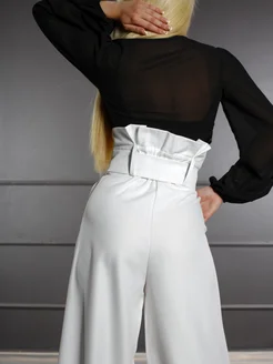 Асимметричные брюки палаццо с запахом и высокой посадкой