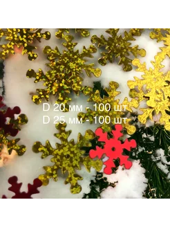 Пайетки новогодние снежинки 25 мм и 20 мм 200 шт микс