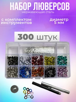 Набор цветных люверсов 5 мм 300 штук + инструменты