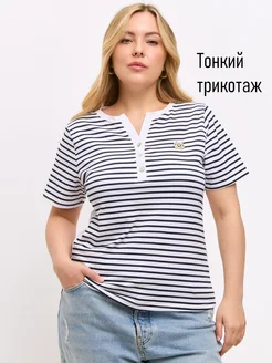 Футболка в полоску с вырезом V и пуговицами
