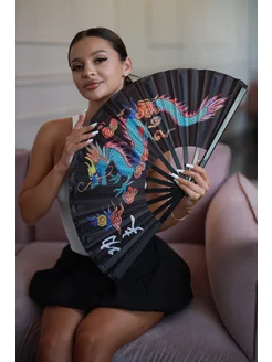 Веер складной черный с драконом