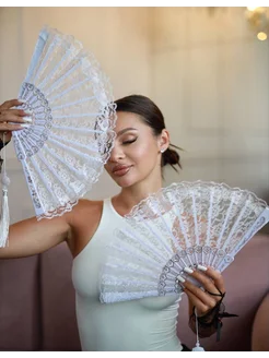 Веер складной ажурный белый 2 штуки