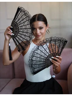 Веер складной ажурный черный 2 штуки