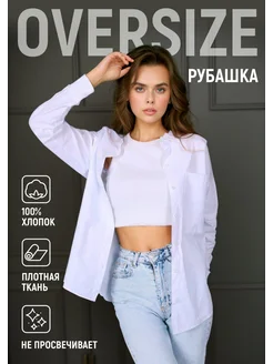 Рубашка белая оверсайз базовая хлопок для офиса и школы