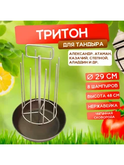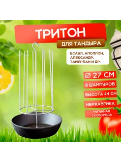 Тритон для тандыра (крючок) 8 шип, чугунная сковорода 27 см