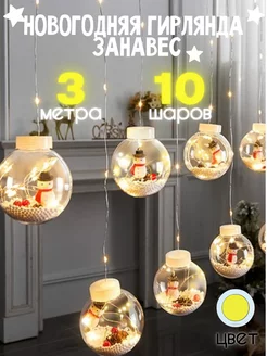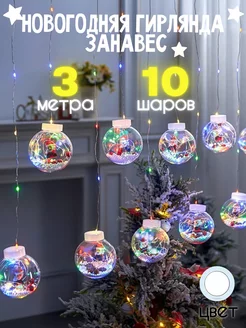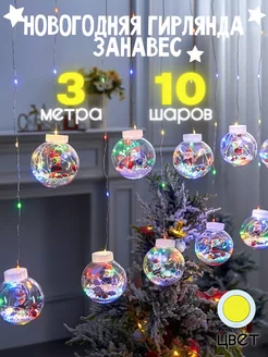 Новогодняя Гирлянда Шарики - штора светодиодная 3м