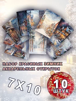 Акварельные новогодние мини открытки Зимние, 7х10 см, 10 шт
