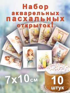 Акварельные мини открытки Пасха с ангелом, 7х10, 10 шт