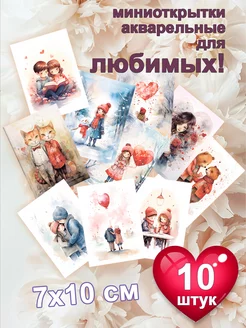 Акварельные мини открытки для любимых 14 февраля, 7х10, 10шт