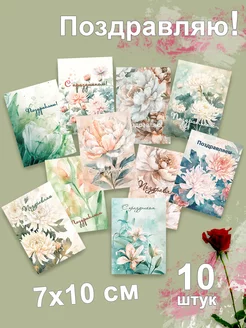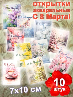 Акварельные мини открытки 8 марта, 10х7, 10 шт, без повтора