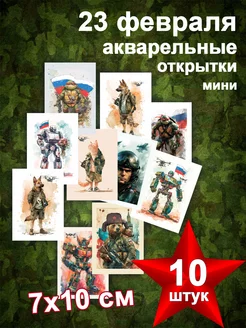 Акварельные мини открытки солдату СВО 23 февраля 7х10 10шт