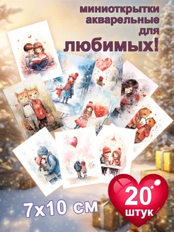 Акварельные мини открытки для любимых 14 февраля, 7х10, 20шт