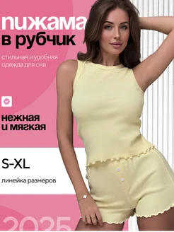 Пижама с шортами и майкой в рубчик