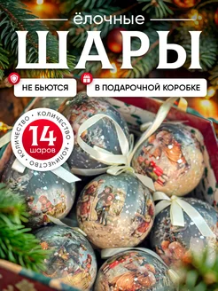 Набор ёлочных шаров 14 штук Новогодняя деревня
