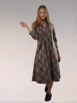 Платье нарядное офисное с поясом клетка