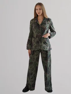 Костюм брючный палаццо зеленый в фис