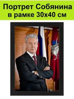 Портрет Собянина в рамке 30х40 см картина, постер, плакат