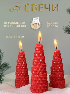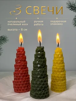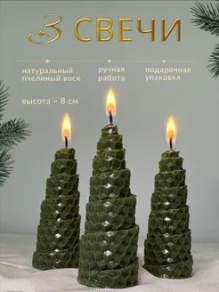 Новогодние свечи елочка 8 см - 3 шт, пчелиный воск