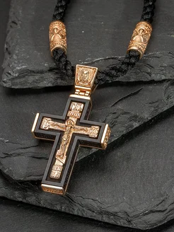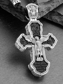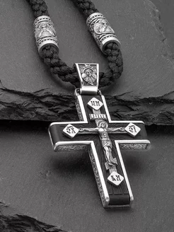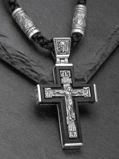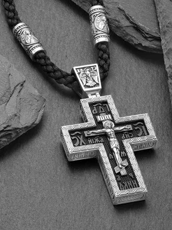 Крест православный на гайтане серебряный 925 с чернением