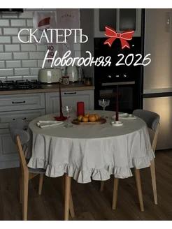 Скатерть круглая на стол, 150x150 см, светло-бежевая