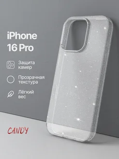 Прозрачный чехол на iPhone 16 Pro с блестками