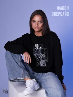 Свитшот оверсайз с принтом без начеса