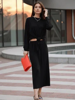 Костюм осенний с юбкой макси и кофтой оверсайз