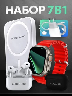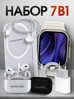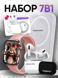 Умные смарт часы в подарочном наборе 7 в 1 с наушниками