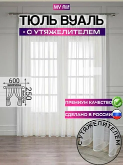 Тюль в спальню, с утяжелителем белая 600х250