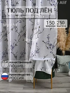 тюль лен сакура синий для гостиную кухню 150х250