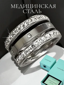 Тройное кольцо с 1 дорожкой из камней
