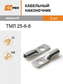 Кабельный наконечник ТМЛ 25-6-8 (5 шт) медный луженый